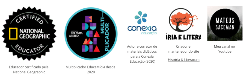 Também sou educador certificado pela National Geographic Society, EducaMídia e Kahoot Academy, além de autor e revisor de materiais didáticos da Conexia/Rede AZ e idealizador dos projetos “Tem fake news nessa História” e “Janela BBC”.
